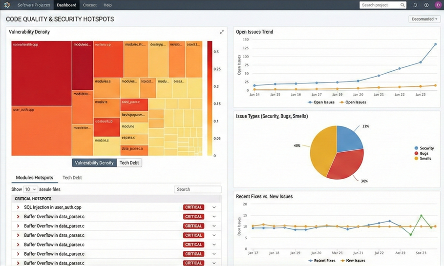 - Quality Gates: Set a hard fail condition. “If Security Rating is worse than A, fail the build.”